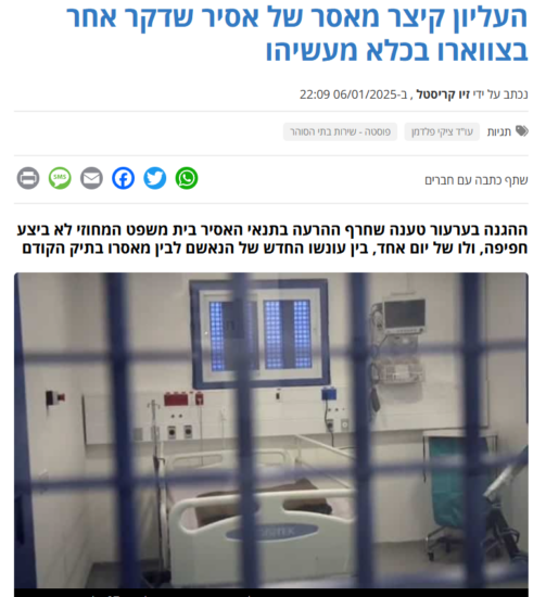 בית המשפט העליון הפחית חמישה חודשים ממאסרו של אסיר שדקר את שותפו לתא, באגף 12 בכלא מעשיהו.
