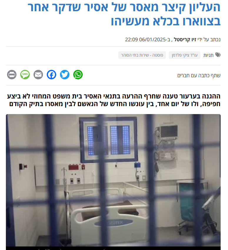 העליון קיצר מאסר של אסיר שדקר אחר בצווארו בכלא מעשיהו